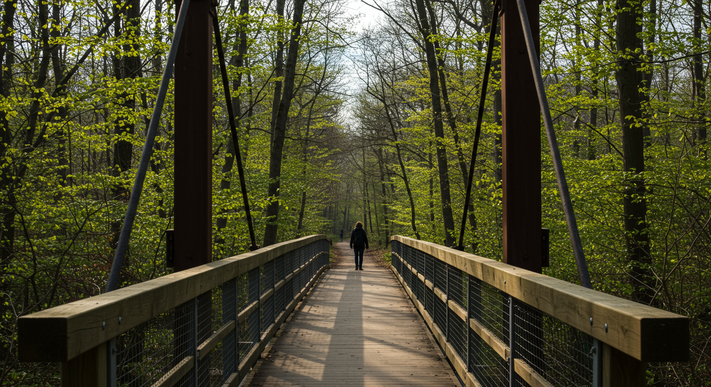 Crahen Valley Park Loop is just outside downtown Grand Rapids and is a 3.1-mile loop featuring a creek crossing and beautiful landscapes. It’s a popular spot for bird watching, hiking, and walking dogs. Aman Park has some beautiful trails, like the